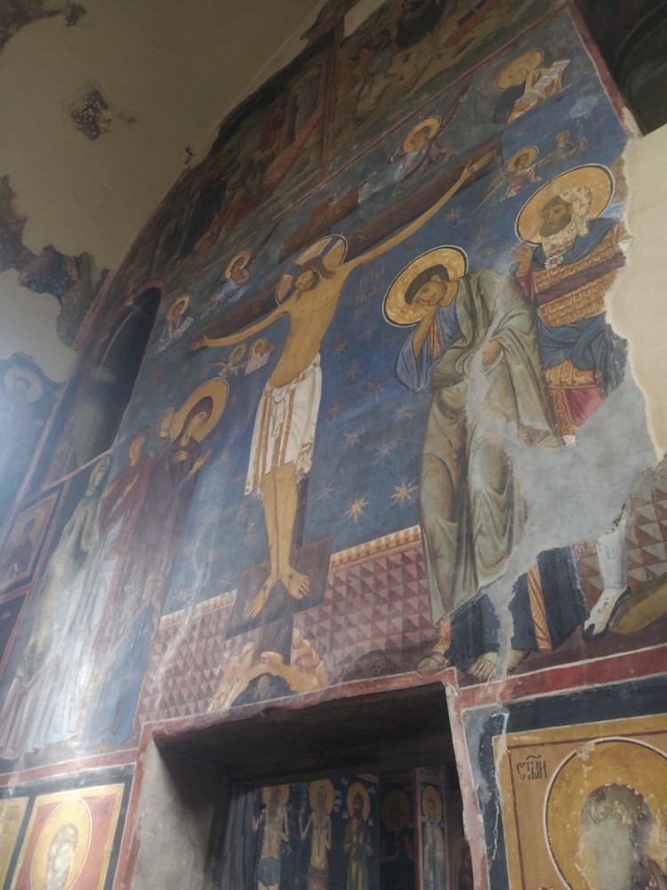 Богородичина црква нас заштитнички прима у своје крило. Пуна црква греје срце и распламсава веру и наду, упркос хладноћи која напољу влада... Диван пој студеничких монаха, са окупљеним верним народом, одавао је славу, и уздизао хвалу и молитву Господу, који нас је пратио погледом са „Распећа” – најлепше студеничке фреске. Представа распећа ме је увек фасцинирала својим дубоким смислом и вишезначношћу. У мом поимању распећа, акценат није на мукама, већ на загрљају, који нам Исус са крста упућује.
