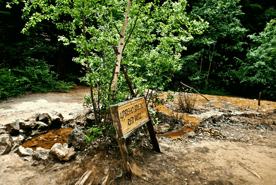 Druga prirodna retkost u „Đavoljoj Varoši“ su dva izvora vode čudnih svojstava. „Đavolja voda“ koja se nalazi u neposrednoj blizini zemljanih piramida u „Đavoljoj jaruzi“je hladan i ekstremno kiseli (ph 1.5) izvor sa visokom mineralizacijom (15 g/l vode).Sadržaj nekih elemenata (aluminijum, gvožđe, kalijum, bakar, nikl, sumpor) je ekstremno visok u odnosu na obične vode za piće, odnosno povećan je za 10 do 1.000 puta. „Crveno vrelo“ je drugi izvor koji se nalazi nizvodno, oko 400 m od prvog na aluvijalnoj terasi, odnsono na ravnom terenu. On je manje kiseo (pH 3,5) i sa nižom opštom minerizacijom (4.372 mg/l vode). Njegova voda se zbog ravnog terena razliva u veoma tankom sloju i otiče u korito obližnjeg Žutog potoka. Zbog oksidacije gvožđa koga voda sadrži u velikim količinama stvara se crvena terasa lepezastog oblika koja u prostoru deluje veoma atraktivno.