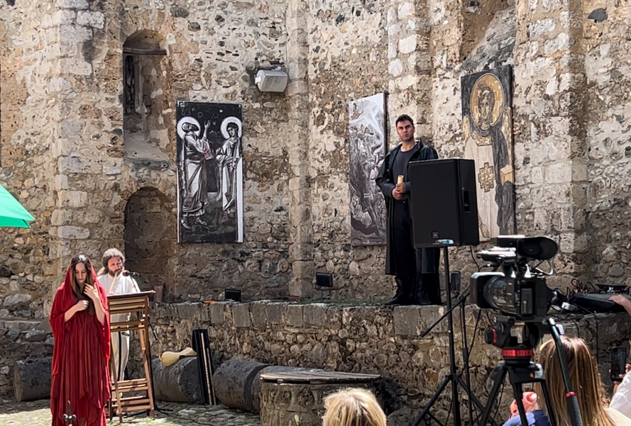 У аутентичном амбијенту атријума цркве Светог Спаса, у оквиру Спасовданских свечаности, Марија Бергам и Ђорђе Марковић, уз музичку пратњу Милоша Николића, успешно су одиграли ову поетску дуодраму, и на јединствен и нов начин донели пред публику раскошну и потресну поезију и дух наше славне песникиње Десанке Максимовић, обележавајући тако јубилеј 60 година од првог објављивања Десанкине збирке песама “Тражим помиловање” у издању Матице српске.