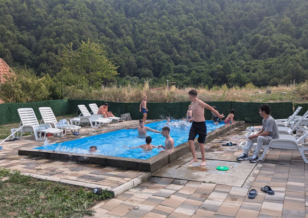 Купање на базену у смештају у Црном Врху.